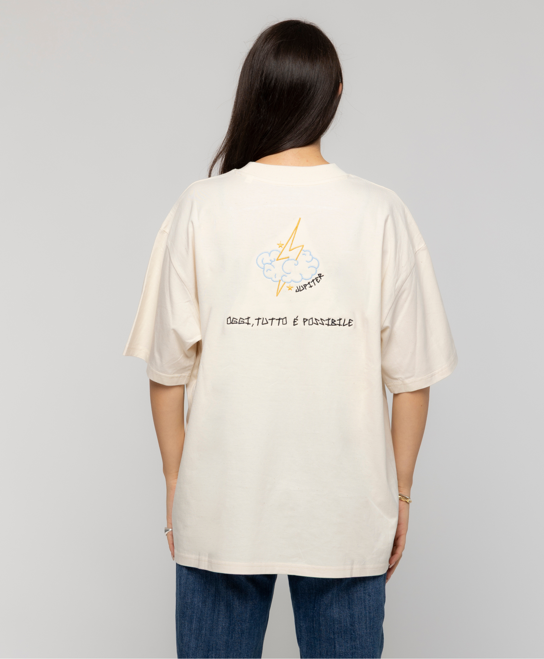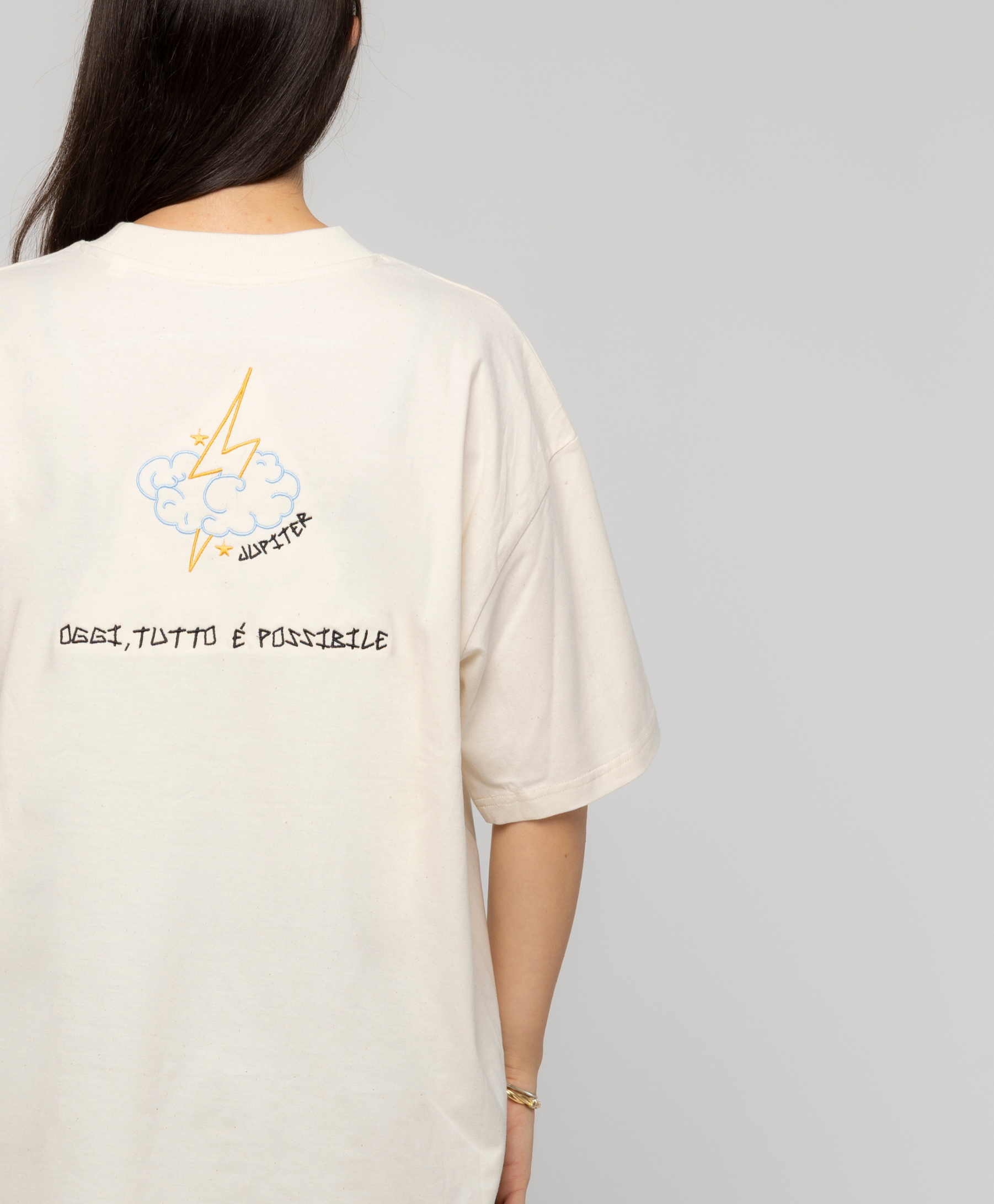 Scritta ricamata lato cuore; simbolo e frase ricamati sulla schiena.